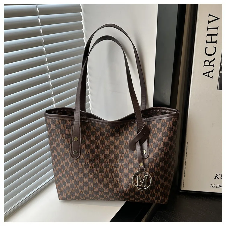 حقيبة نسائية جديدة لعام 2025، سعة كبيرة، تصميم بنقشة مربعات متوسطة، تصميم متعدد الاستخدامات، حقيبة كتف صغيرة للتنقلات اليومية